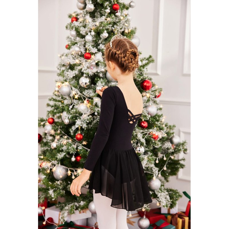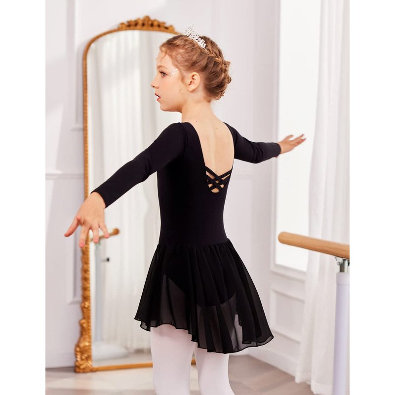 Zaclotre Ballet Leotards for Girls Toddler Classic Long Sleeve Criss-Cross Back Dance Dress Ballerina Outfits