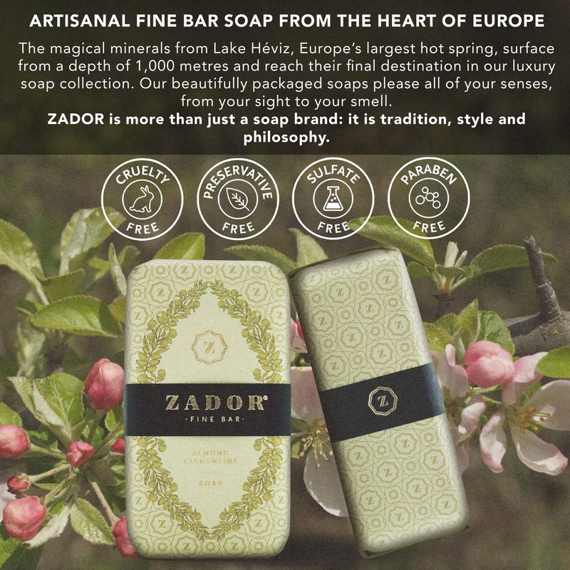 - SPECIALTY SOAPS -- Artisan-crafted and packed by hand in Hungary to ensure quality and consistency at every step. Zador proudly combines tradition, innovation, purity, and style to create paraben free soap, sulfate free bar soap, preservative free body soap, and cruelty free bar soap products.