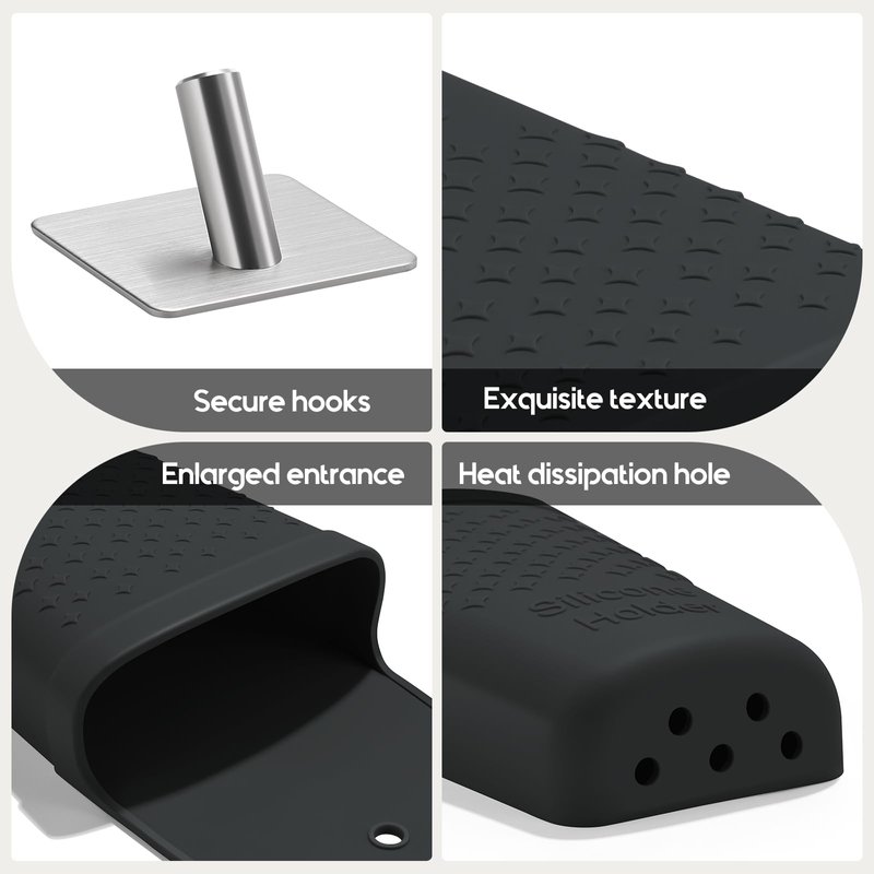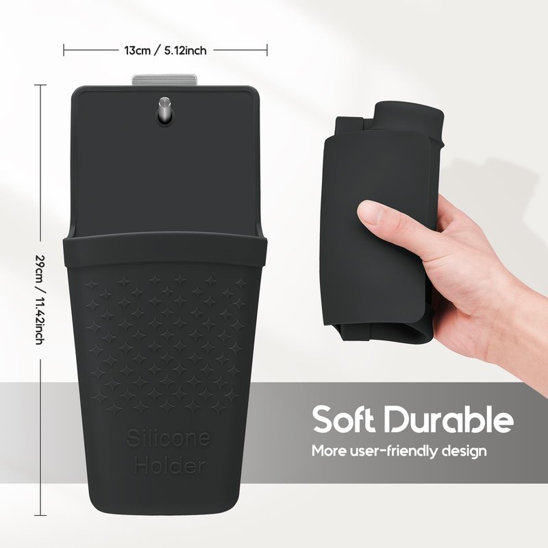 - STAINLESS STEEL HOOK: It can always fix the silicone holder in the place you want and never fall off.