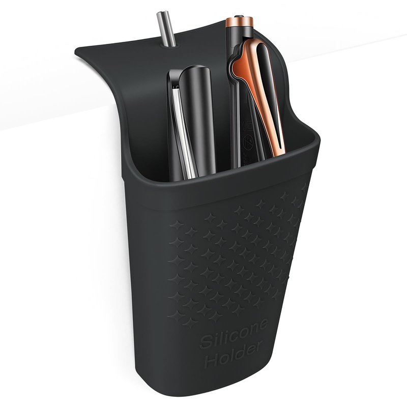 ZAKRA Curling Iron Holder,Heat Resistant Silicone Holder for Flat Iron,Hair Straightener,Hot Hair Tools,Vanity Accessories Fix with Stainless Steel Hook.(Black)