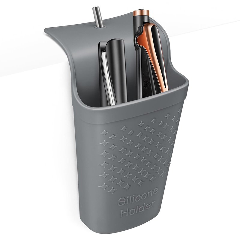 ZAKRA Curling Iron Holder,Heat Resistant Silicone Holder for Flat Iron,Hair Straightener,Hot Hair Tools,Vanity Accessories Fix with Stainless Steel Hook.(Grey)