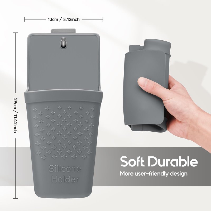 - STAINLESS STEEL HOOK: It can always fix the silicone holder in the place you want and never fall off.
