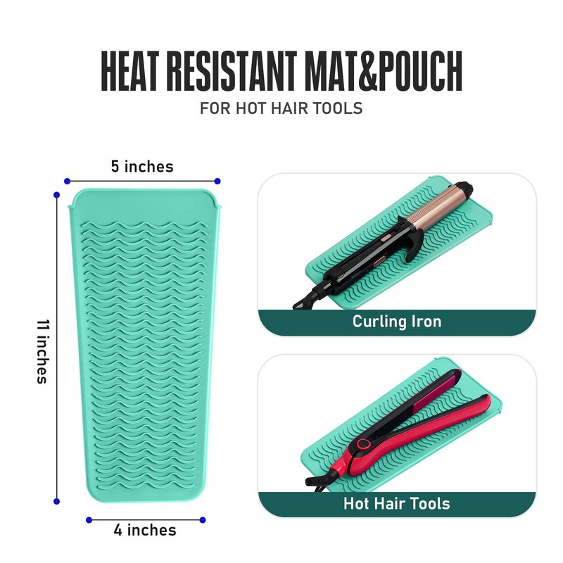 ZAKRA Heat Resistant Silicone Mat Pouch for Hair Straightener,Flat Iron,Curling Iron,Hot Hair Tools.(Mintgreen)