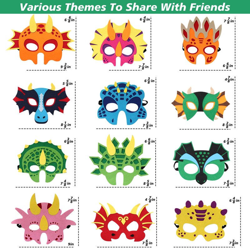- 👍Felt Materials: Each dinosaur party masks for kids are delicate designs, thick felt material rather than foam or papers, bright colors, vivid dragon bones and scales, a comfortable experience for children's heads.