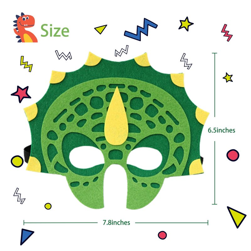 - 👍For Most size: Felt dinosaur masks are in length: 6.86 inch-9.86inch, width: 6.86 inch-7.87 inch, normal size and fit most kids' head well. Each party mask includes a durable and wide enough elastic band, easy to wear and would not fall off easily, great choice for kids 3+.