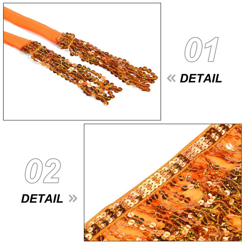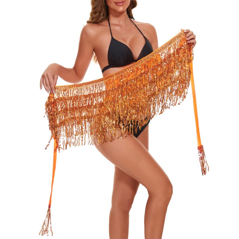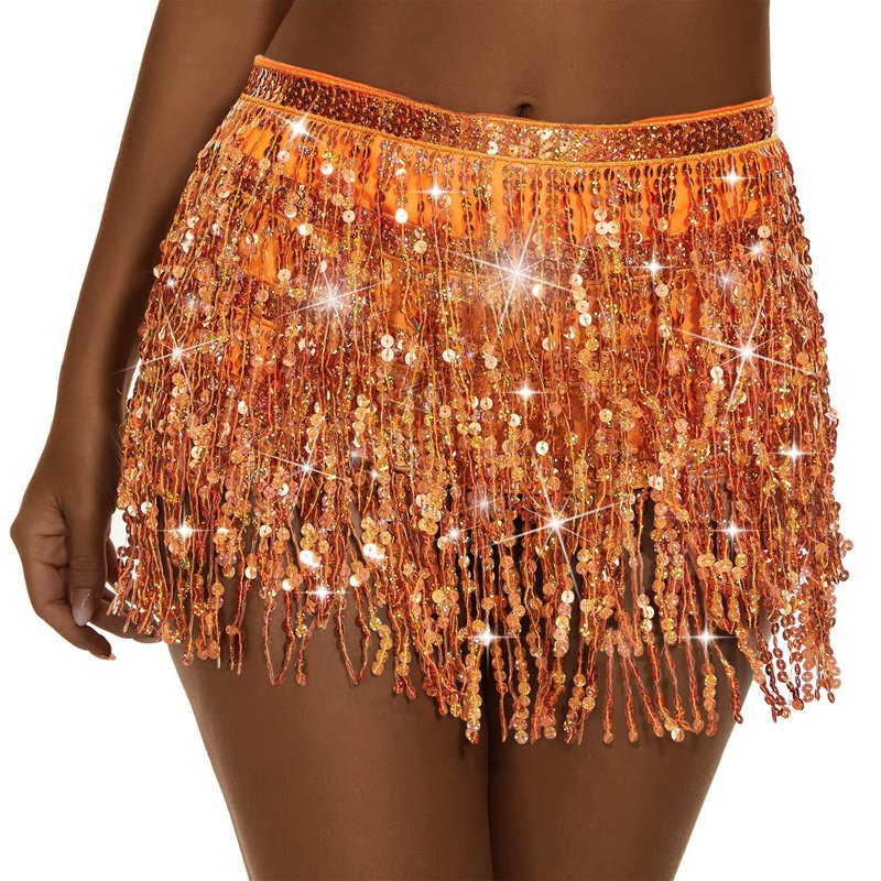 Zando Festival Clothing for Women Rave Belly Dance Skirt Tassel Sequin Hip Scarf Disco Space Cowgirl Outfit Sparkly Fringe Wrap Skirts Belt Dance Performance Accessories Orange One Size