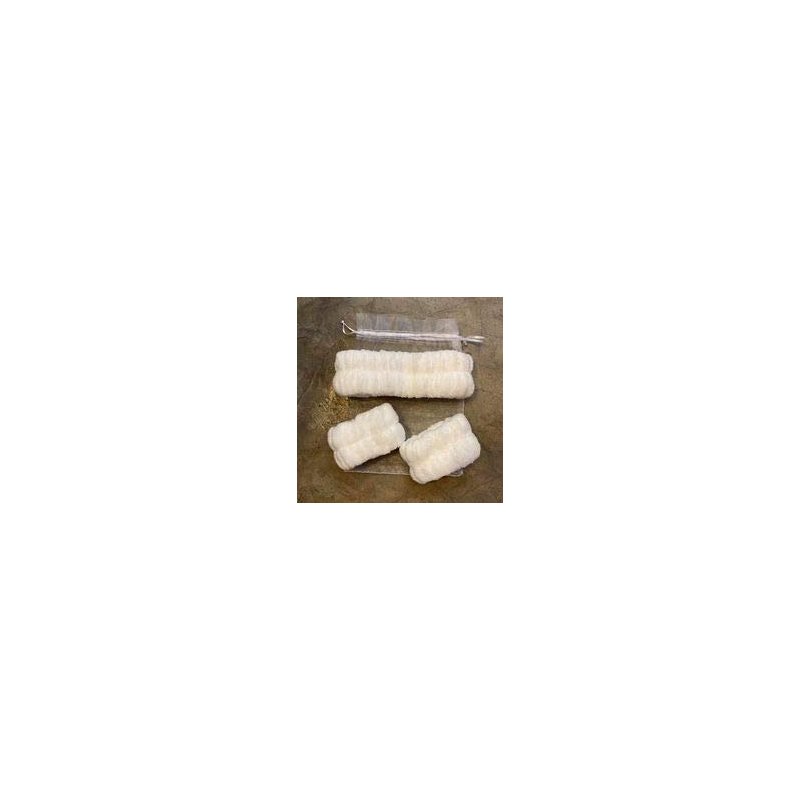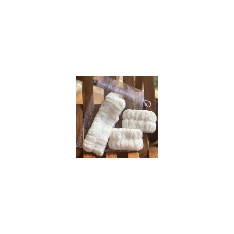 This set comes with a white mesh bag to place the damp product in to hang dry. These are super comfortable and soft made from quick-drying, breathable, and durable microfiber material. Our unisex skin care set is suitable gift for your friends and family. Send them something unique, useful, and practical. This design holds a provisional patent. Instructions Headband: 1. Pop the headband over your entire head and pull down to the neck. 2. Un-tuck your hair so that it sits over the Headband. 3. Pull the front of the headband back up to meet the hairline, sweeping your hair back with it. Instructions Wrist Washband: 1. Place the wrist washbands on both wrists. 2. Push wrist washbands two to three inches below your wrist until snug. 3. Keep wrist washbands during the entire face washing regimen, remove after. 4. Place set in mesh bag and hang dry. This set does not come with complex packaging. It is very simple. This allows the price to remain low for the consumer and protect the environment from any additional unwanted tags and plastics to be thrown back to the earth.