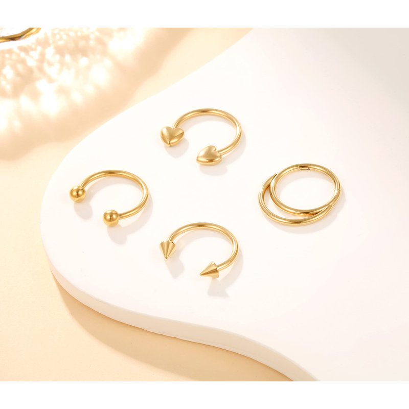 - DURABLE AND SAFE: Our gold septum ring is made with high-quality stainless steel and designed for optimal safety, so you can wear it with peace of mind. It's also easy to clean and maintain, making it a practical choice for everyday wear.