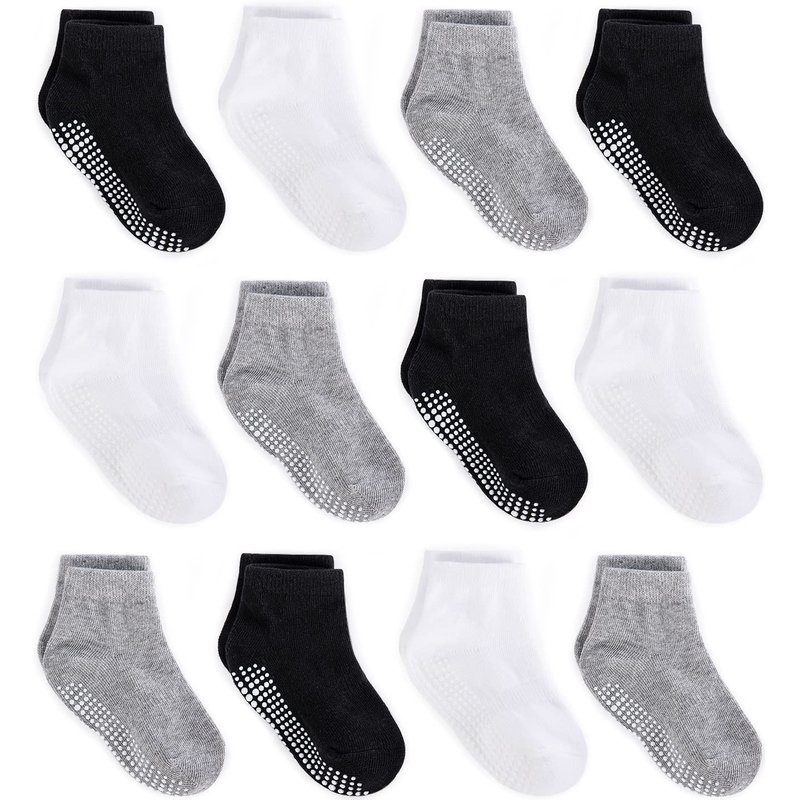ZAPLES Baby Non Slip Grip Ankle Socks with Anti Skid Grippers Boys Girls Low Cut for Infants Toddlers Kids, Assorted - 12 Pairs, 12-36 Months