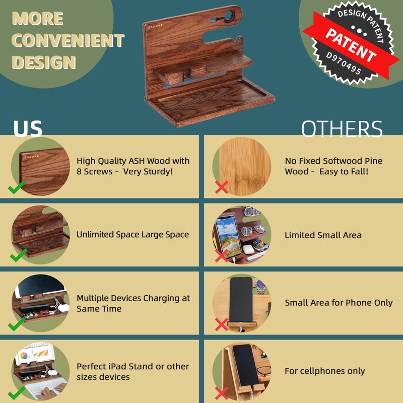- Sturdy & High Quality Wood Material: Handmade by high quality wood material, our multifunctional phone docking station is sturdy and renewable. In addition, the surface of wood phone docking station for male is carefully polished and covered with sturdy finishing