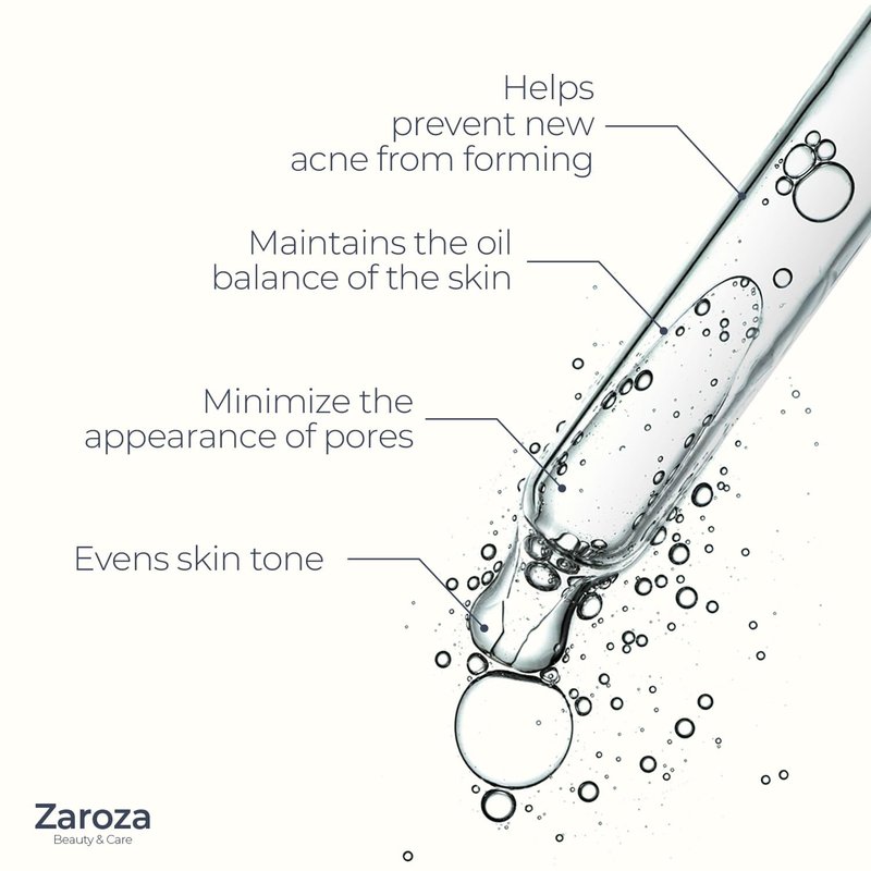 - Advanced Anti-Acne Formula: Zaroza Anti-Acne Serum is an effective skin care formula designed to be used on the face and body. Formulated with salicylic acid, azelaic acid and niacinamide, this serum targets pores, blackheads and oily skin, effectively preventing acne buildup and creating a balanced complexion in. It provides a complete, thorough healing process removes existing acne scars and prevents new ones from breaking out.