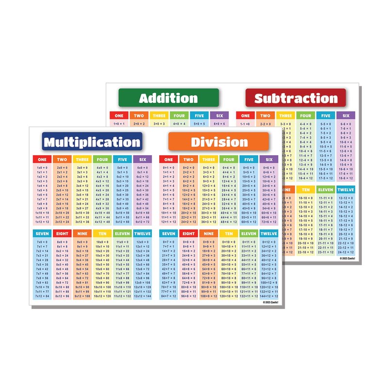 - This chart is an all-in-one resource that includes multiplication, division, addition, and subtraction charts from 0 to 12, making it the perfect tool for students of all ages and levels. It's also great for homeschooling parents who need a quick and easy reference guide for teaching math.