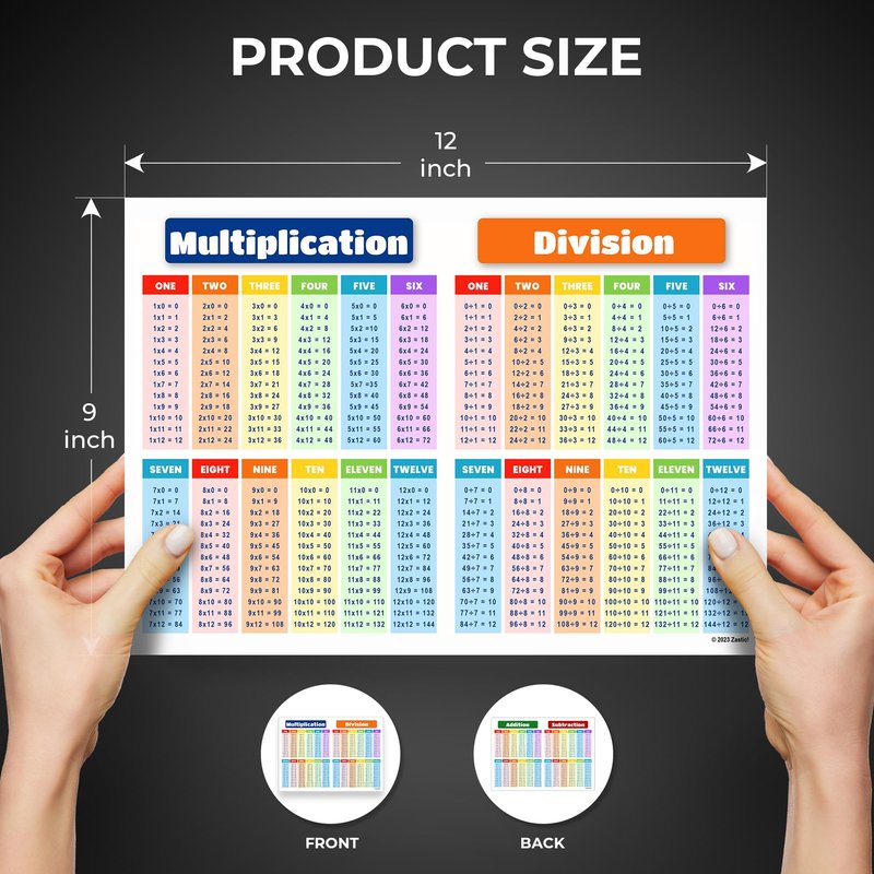 Zastic! 8.5 x 11 in Small Laminated Math Table Charts - Multiplication & Division Poster Chart for Kids