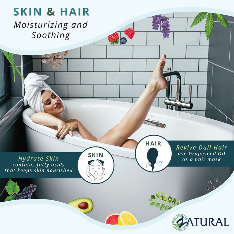 - Versatile Use: Grape seed oil can be used for a variety of purposes, from moisturizing the face and body to conditioning hair and nails. It can also be used as a carrier oil for essential oils or as a base for DIY skincare recipes.