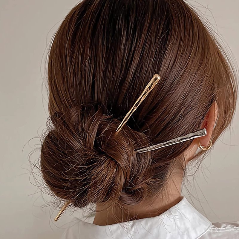 - A set of 4 hair sticks, 2 silver, 2 gold. Pretty designs, great for hair buns and bun holders, or French twist.