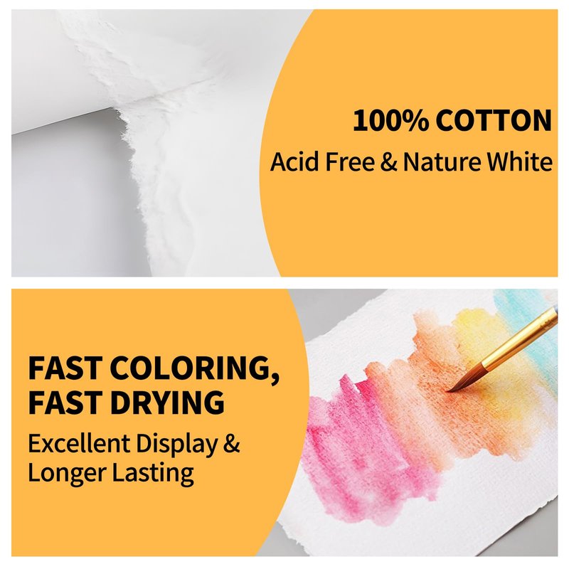 - 100% COTTON: Crafted from cotton fibers, this watercolor paper bulk guarantees superior strength and durability compared to wood pulp-based alternatives. The cotton content enhances absorbency, allowing for better color retention and blending in your watercolor paintings