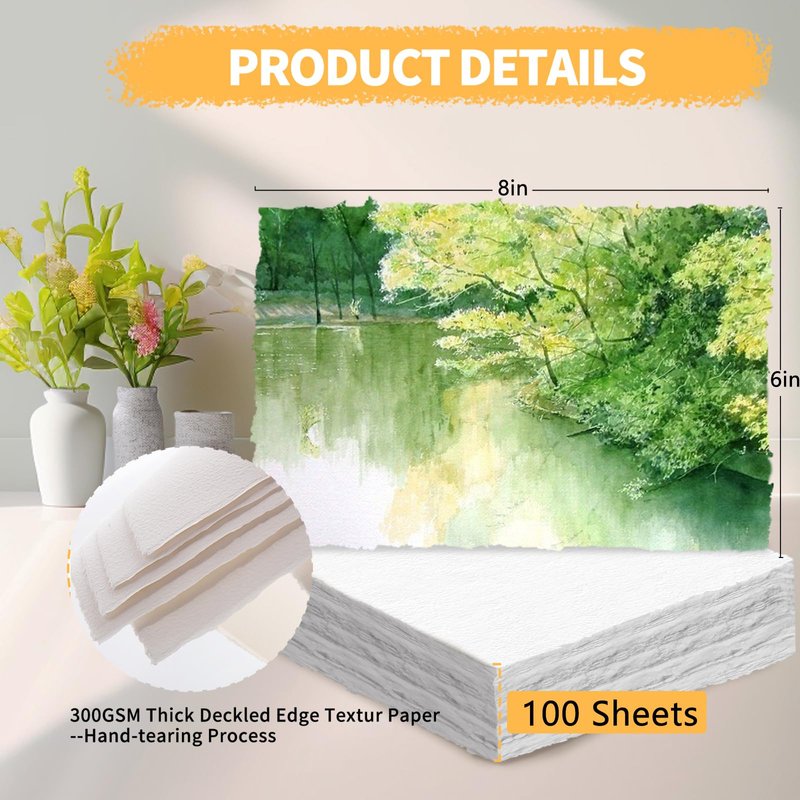 - PACKAGING INCLUDES: A pack of 100 sheets of watercolor paper, made from high-quality 300 GSM deckled edge paper. The rough/textured handmade cotton paper in white offers a unique texture for your artworks, ensuring a professional finish