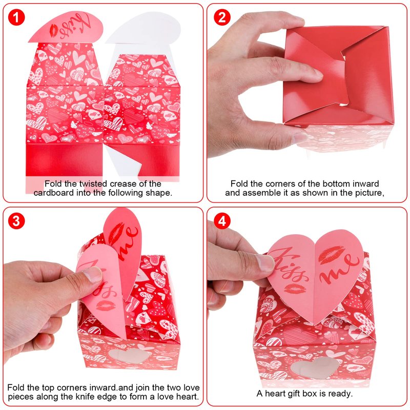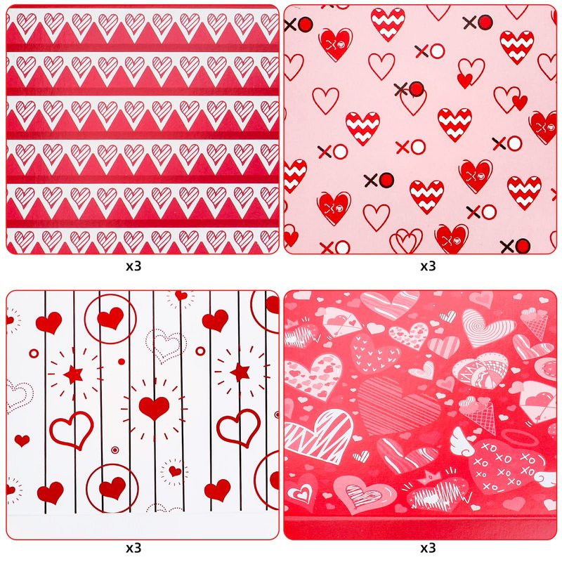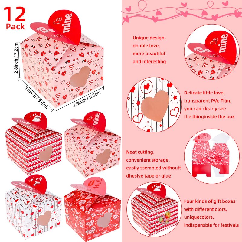 - The package includes- a total of 12 love carton boxes, which are divided into 4 styles, 3 for each style. Sufficient quantity for your daily use; in classic valentine themed color, using these valentines boxes to pack your gift can add sweetness and romance,good package makes your desserts more appetizing