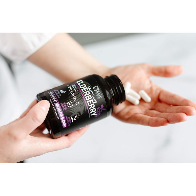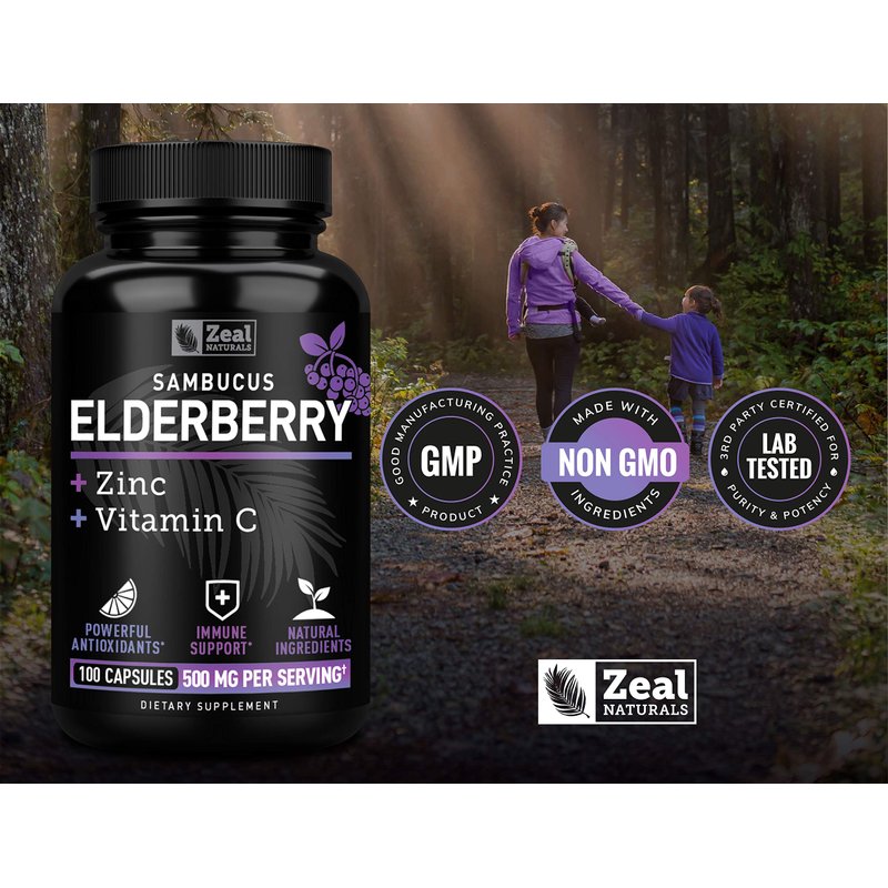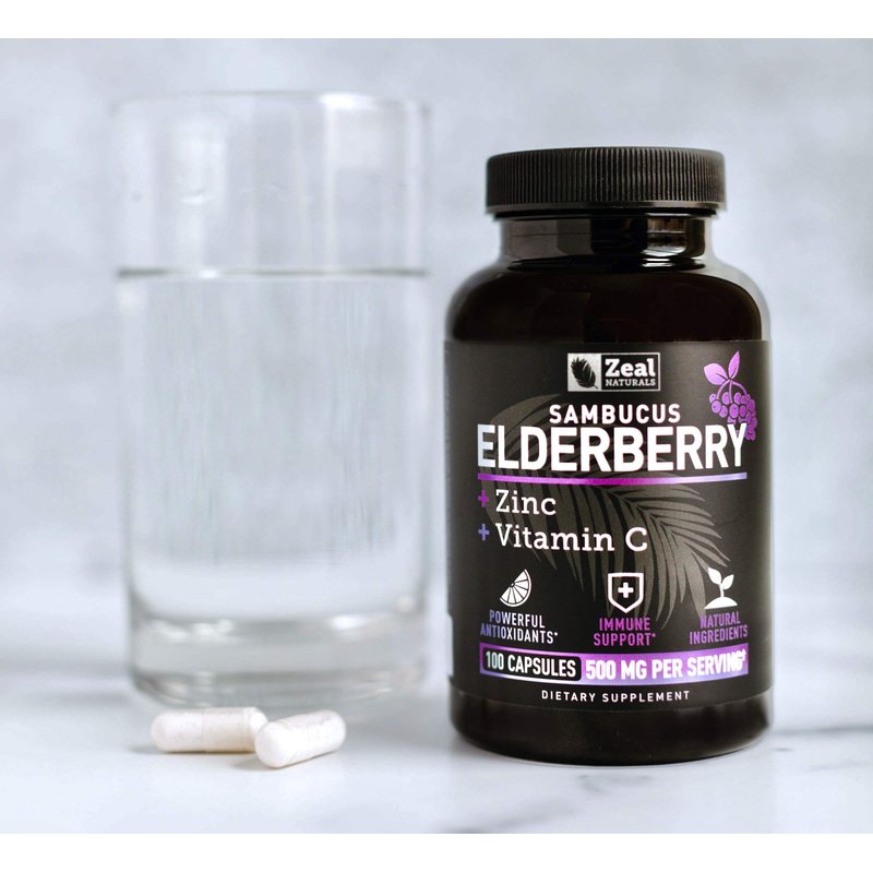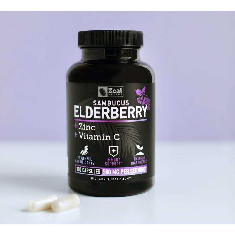 Zeal Naturals Max Strength Elderberry Capsules + Zinc + Vitamin C | 500mg for Immune System Support with Black Sambucus Elderberry | 100 Count | 3-in-1 Immune Support for Adults