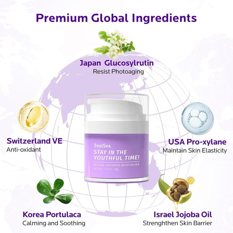 ZealSea Retinol Night Cream is safe and natural,with key ingredients extracted from plants, harnessing the power of anti-aging and anti-oxidizing properties from nature.