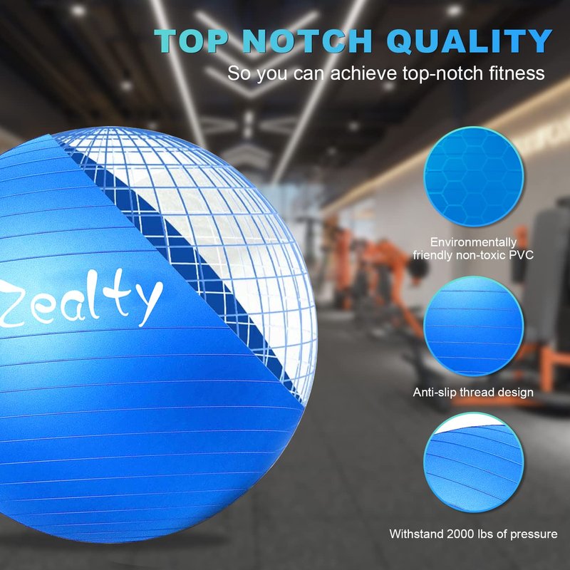 zeatly Yoga Ball Exercise Ball - Anti-Slip and Anti-Burst Workout Ball, Birthing Ball Fitness Ball with Quick Pump, Balance Ball Chair for Stability, Pregnancy and Physical Therapy