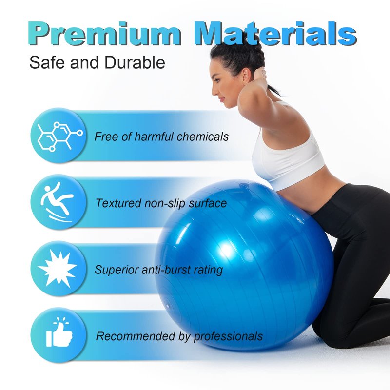 - 【EXPLOSION-PROOF】: This exercise ball adopts honeycomb structure, elastic barrier, it will not burst when stabbed, and it will deflate slowly, which can effectively reduce the risk of injury due to falling to the ground. This anti-explosion and slow deflation design makes the yoga ball safer, and we can use it with confidence.