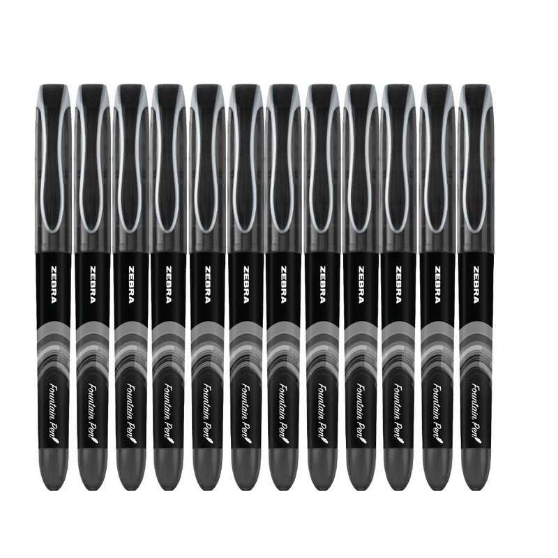 Zebra Pen Fountain Pen, Stainless Steel Nib, Fine Point, 0.6mm, Black Ink, Disposable, 12-Pack