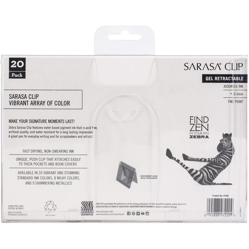Zebra Pen Sarasa Clip Retractable Gel Pen, Fine Point, 0.5mm, Rainbow Assorted Colors, 20-Pack