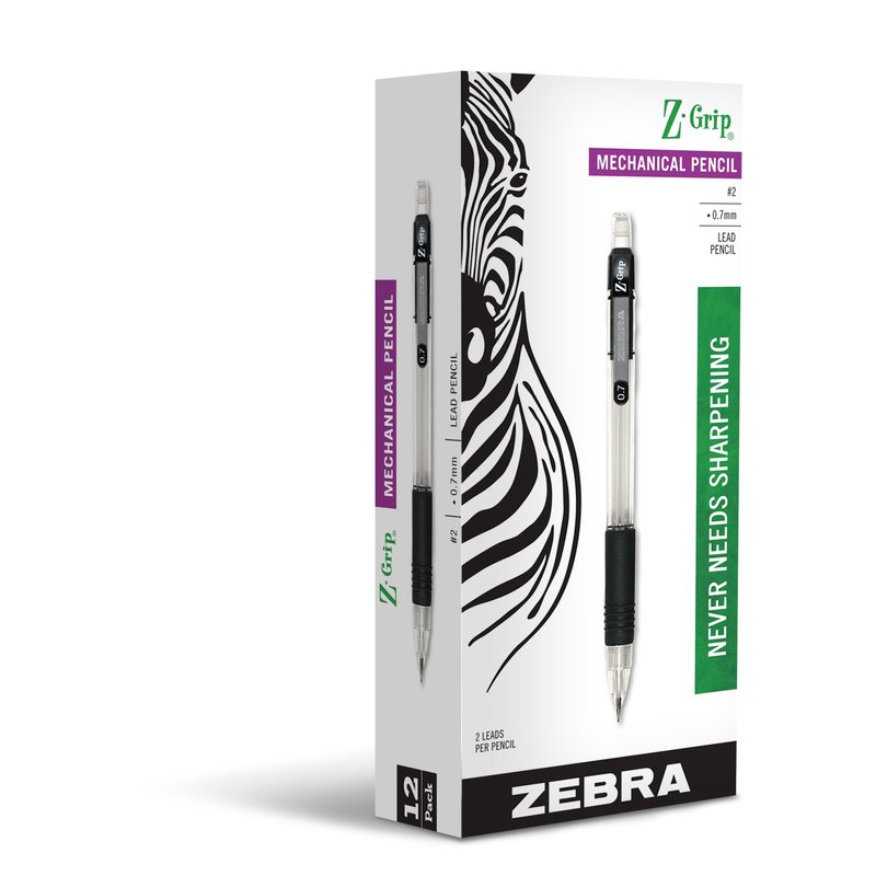 Zebra Z-Grip Mechanical Pencil, 0.7mm Point Size, HB #2 Graphite, Black Grip, 12 Pack