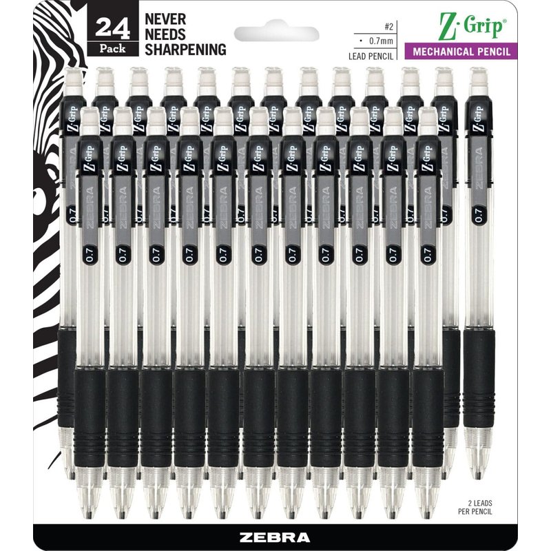 - Create sketches and take notes using this pack of Zebra Z-Grip mechanical pencils. A built-in clip allows quick attachment to a binder or folder, and the clear barrel lets you monitor the lead supply. These black Zebra Z-Grip mechanical pencils arrive preloaded with two leads for immediate use, while the plastic construction offers durability.