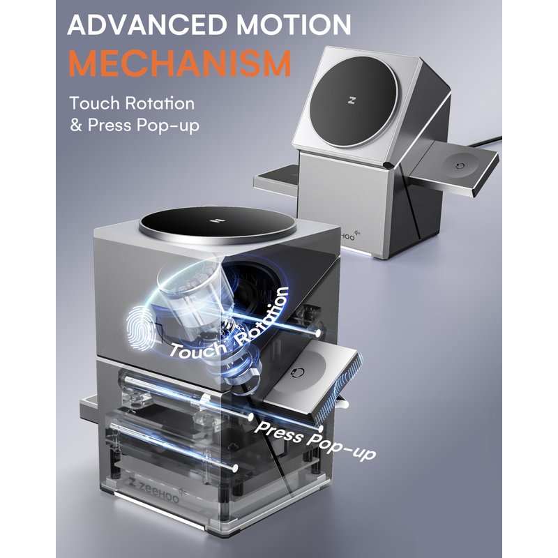 - AUTO - ROTATING PHONE CHARGER: The charger comes with an innovative auto - rotating feature for your phone, along with a pop - up charging dock designed specifically for your Apple Watch and AirPods. It offers a highly efficient way to power up all your beloved Apple devices simultaneously.