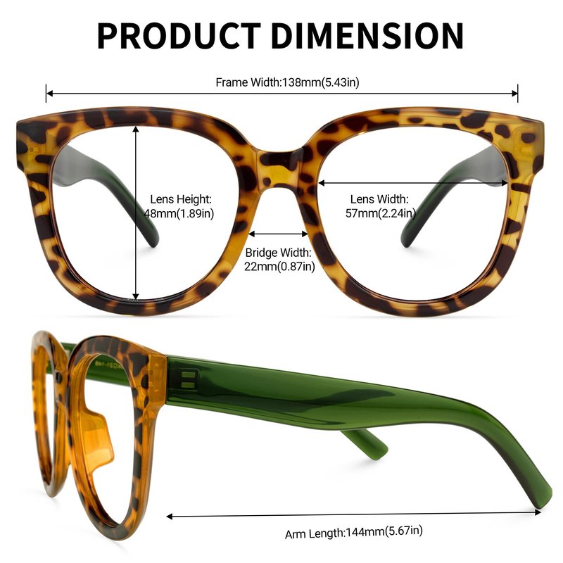 - [PRODUCT DIMENSION] Lens Width: 57mm (2.24") | Lens Height: 48mm (1.89") | Bridge Width: 22mm (0.87") | Frame Width: 138mm (5.43") | Arm Length: 144mm (5.67")