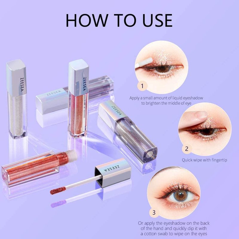 - Application Tips: 1. A little liquid eye shadow to brighten the eyes 2. Quickly and gently dizzy the pulp of the finger 3. Or apply eye shadow on the back of your hand and quickly dip and apply with a cotton swab.
