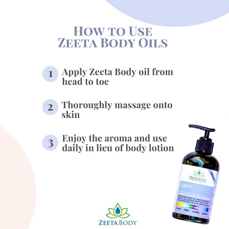 This body oil blend is designed to reduce the appearance of cellulite and stretch marks and improve texture and elasticity by combining the purest therapeutic grade essential oils (EO) of grapefruit and lemongrass with our signature base of herbally infused sweet almond oil. Our special, proprietary blend includes skin toning herbs that have been used to treat and condition the skin for centuries and are known to plump and fill dimples. Lose your lotion - switch to Zeeta's signature blends containing healing herbs and natural oils.