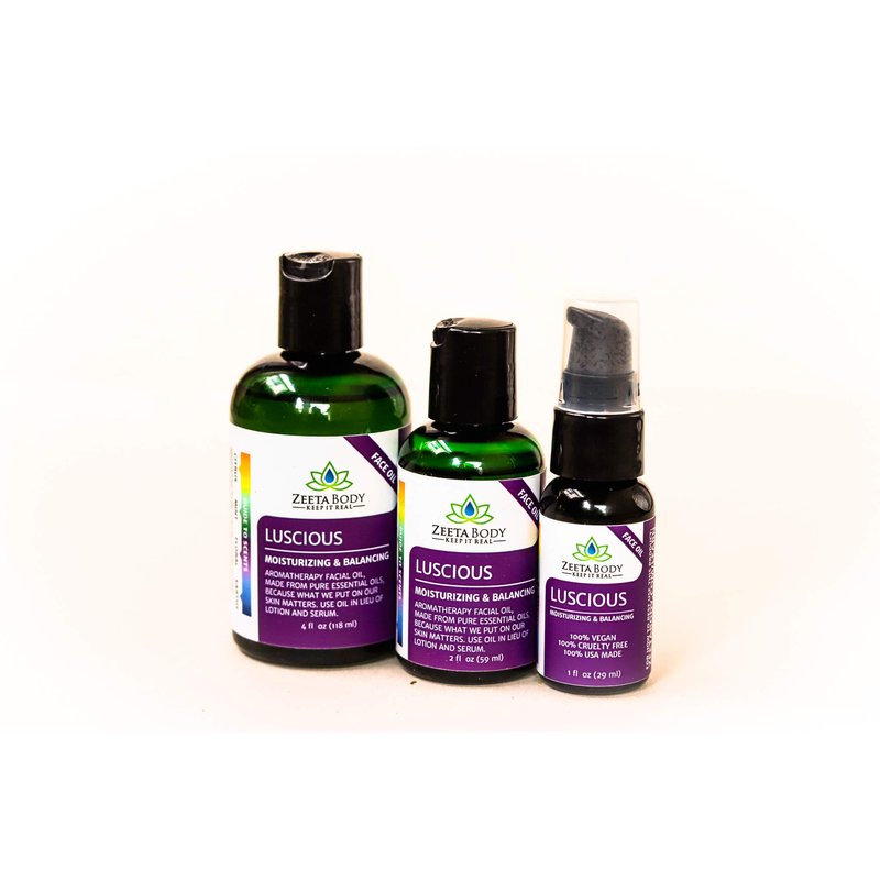 Our best selling facial oil, this powerful moisturizer is infused with collagen boosting herbs and now includes Argan and JoJoba Oils, roses, and the essential oils of all of your favorite flowers: lavender, jasmine, chamomile, palmarosa and geranium. These lovely ladies of the flower world do more than smell wonderful: they have natural antiseptic properties that combat acne and promote the regeneration of skin cells. Great for balancing skin, this combination of essential oils can help relieve PMS and menopause symptoms. You'll love the sweet aroma and all-out flower power skin shining results in this blend! Lose your lotion - switch to Zeeta's signature blends containing healing herbs and natural oils.