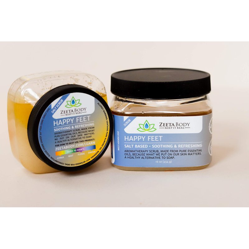 Tired of your pumice stone or scrub brush but need something more than soap on those dry heels and toes? Get happy with Happy Feet, a salt based blend of lemongrass and patchouli essential oils that combine exfoliating with healing in the most soothing combination possible. Skin conditioning herbs and sweet almond oil for added healing and moisture. Lose your lotion - switch to Zeeta's signature blends containing healing herbs and natural oils.