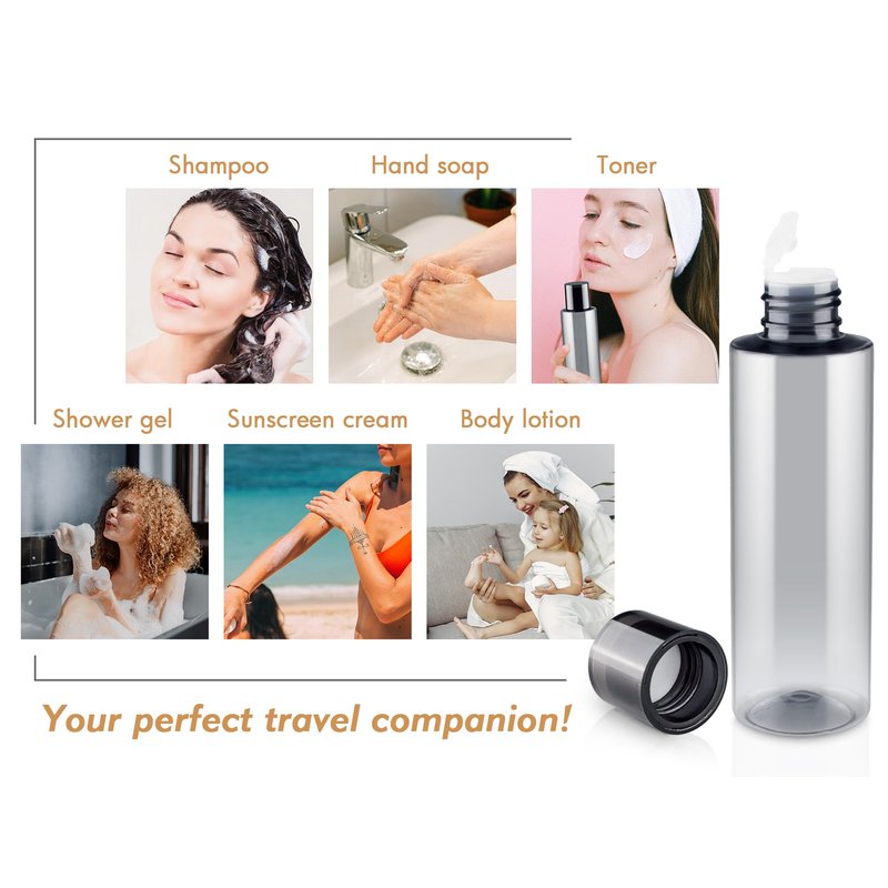 - 【HIGH QUALITY PET】Our travel-size toiletries are made of high-quality PET material, which is impact resistant, lightweight, durable andble. This travel size containers are rigid enough to stand straight, also could be squeeze slightly. When the liquid is about to be used up, just flip the bottle overnight, squeeeze and gravity will ensure that every last drop of liquid flows down effortlessly.