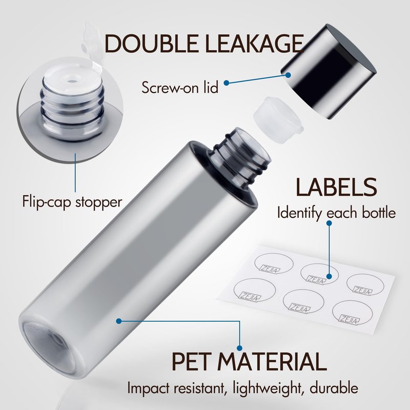 - 【DOUBLE LEAKAGE】Our travel size bottle is protected by a double layer of leakage design. The outside screw-on lid has good sealing. After unscrewing the outside screw lid, the bottle mouth also has a small flip-cap stopper. The unique dual design can minimize the possibility of leakage. There is no need to worry about worry about the liquids will spill out when traveling!