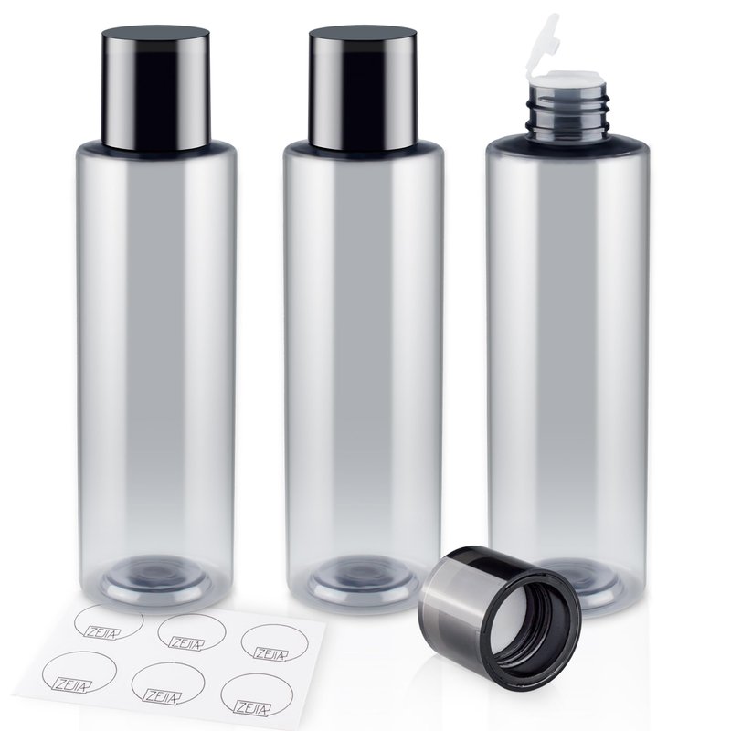 6OZ Pack of 3 Plastic Empty Bottles with Black Disc Top Caps, Refillable Containers for Shampoo, Lotions, Cream and More