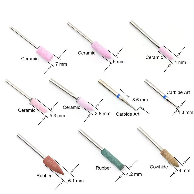 10 Pcs Ceramic Stone Nail Drill Bit 3/32" Rotary Burr Cuticle Clean Mill Manicure Pedicure Tools Nail Drill Accessories Set Features: