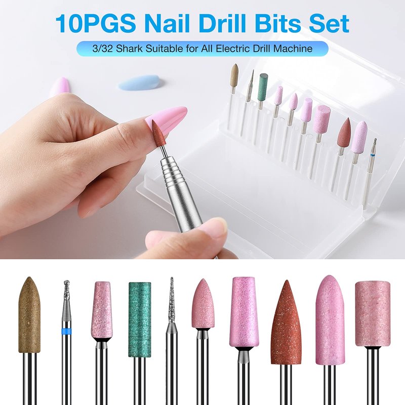 10x Nail Drill Bits with a plastic box