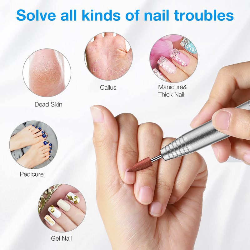 Intersectant stripes of the drill head can help you polish and reshape your nails.