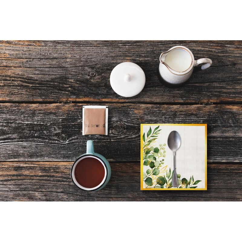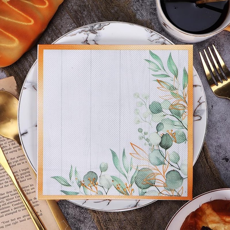 Zelten Colored Paper Party Napkins, 20 Count Shabby Chic for Wedding, inner, Tea Party, Decoupage, Green Leaves