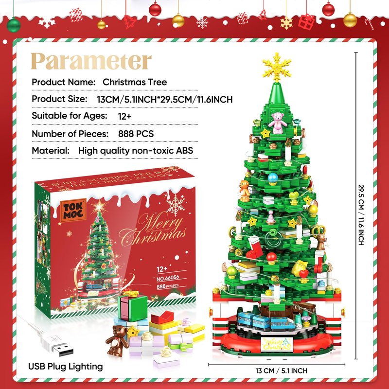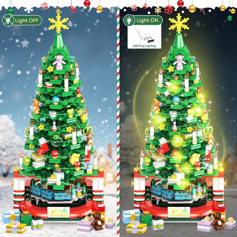- Creative rotating design: This Christmas tree building block set has a unique rotating function, which allows the entire tree to rotate and display under the illumination of LED lights, adding to the festive atmosphere while also bringing visual enjoyment to users.