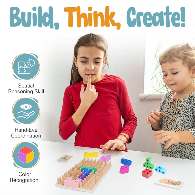 - Stimulates Creativity and Cognitive Skills: This wooden puzzle helps kids ages 6-8 develop spatial awareness and pattern recognition while matching block patterns to the included cards. It's perfect for growing minds and introduces STEM learning in a fun, hands-on way.