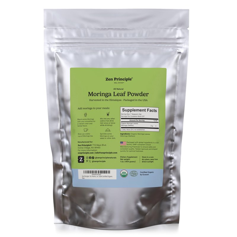 Zen Principle 1 lb. Premium Organic Moringa Oleifera Leaf Powder. USDA Certified Organic.