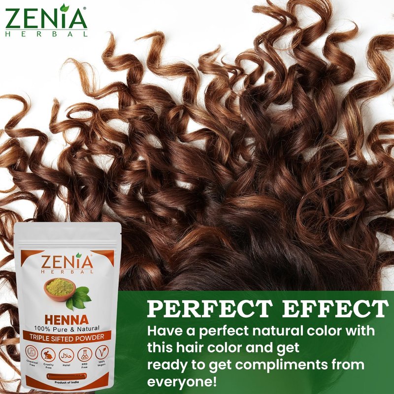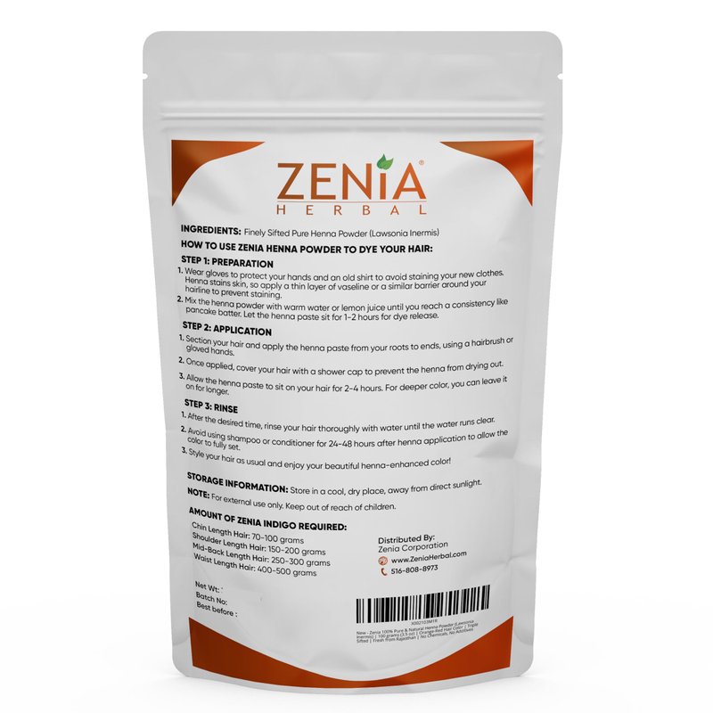 Zenia 100% Pure & Natural Henna Powder (Lawsonia Inermis) | 100 grams (3.5 oz) | Orange-Red Hair Color | Triple Sifted | Fresh from Rajasthan | No Chemicals, No Additives