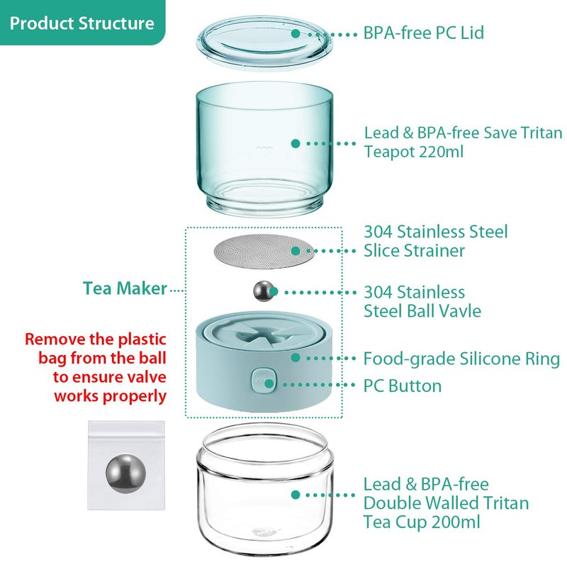 - Lead Free Safety Tritan: All parts are made of high quality BPA food-grade tritan keeps your favorite loose tea in original taste. The high quality tritan looks supper high transparency. and it's heat-resistant and dishwasher safe