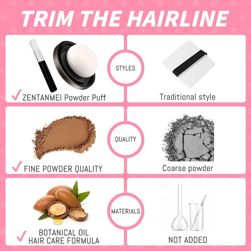 - 【Compact Mirrored Travel Kit Design】:The Hairline Powder 0.14OZ is small and delicate, easy to carry. Hairline Powder comes with a mirror and puff inside,along with a small brush included.Whenever you travel, go on business trips, have appointments, or go on dates, you can quickly create voluminous and beautiful hair, keeping you looking beautiful on the go!
