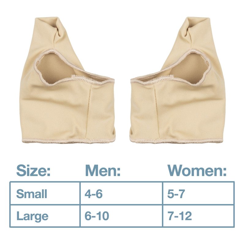- Unisex, Universal Design – Men and women alike can wear our bunion sleeve on either the left or right foot for a reliable, comfortable fit. Size Small fits men's shoe sizes 4-6 and women's shoe sizes 5-7. Size Large fits men's shoe sizes 6-10 and women's shoe sizes 7-12. Each package comes with one pair of bunion relief sleeves.